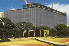 採光性・強度に優れ、現場外への飛散を防止するシートです。良質の塩化ビニール樹脂で防炎加工しています。
